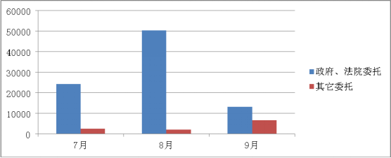 7月8月和9月政府、法院委托成交額仍然是主要來(lái)源。其他委托在9月份增幅明顯。