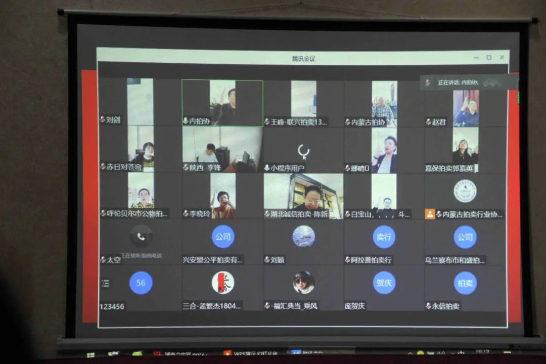 內(nèi)蒙古拍賣行業(yè)協(xié)會五屆五次理事會 暨五屆八次常務(wù)理會圓滿落幕 面對國際新冠肺炎疫情形勢依然復(fù)雜嚴(yán)峻且病毒傳播方式趨于多樣化,國內(nèi)多地零星散發(fā)和局部聚集性病例不斷出現(xiàn),為了大家的安全考慮,同時也考慮到大家的工作時間安排,本次內(nèi)蒙古拍賣行業(yè)協(xié)會五屆五次理事會暨五屆八次常務(wù)理會采取了線上形式召開。 2021年1月28日上午九點(diǎn),會議準(zhǔn)時召開?,F(xiàn)場參會人員有會長王志江、秘書長娜晴、副會長趙軍、王罡、郭素英;騰訊會議室線上參會人員有副會長白寶山、李曉玲、林樹增、王峰、趙秋霞、高燕剛、王鳳林、劉劍;常務(wù)理事宋一峰;理事惠彬、劉俊峰、艾常明、張宏宇以及委托授權(quán)參會的內(nèi)蒙古萬鼎拍賣有限責(zé)任公司總經(jīng)理?xiàng)钭忧?、烏蘭察布和盛拍賣有限公司郭建香等代表共計(jì)28人參會,符合《章程》參會規(guī)定。 本次會議主要議題有: (1)審議2020年內(nèi)蒙古拍賣行業(yè)協(xié)會工作報告; (2)審議2020年財(cái)務(wù)報告; (3)審議協(xié)會會費(fèi)(企業(yè))繳納情況; 會議由王罡副會長主持召開,王會長表示由于疫情原因我們沒能面對面交流,但是我們勇于嘗試新事物,采取線上線下相結(jié)合的會議模式,大家在網(wǎng)絡(luò)會議室一樣可以暢所欲言,為我們行業(yè)建言獻(xiàn)策。會議首先由王志江會長做《2020內(nèi)蒙古拍賣行業(yè)協(xié)會工作報告》報告中向各位參會人員介紹了1-12月份的全區(qū)拍賣行業(yè)與去年同期的經(jīng)營統(tǒng)計(jì)分析對比,從數(shù)據(jù)中以及圖表里可以看出我區(qū)拍賣業(yè)務(wù)是受到疫情影響的,多個業(yè)務(wù)板塊出現(xiàn)負(fù)增長;報告中還介紹了2020年協(xié)會在疫情初期的一些重點(diǎn)工作;協(xié)會承接的商務(wù)廳的“節(jié)能宣傳周”和“安全生產(chǎn)月”兩項(xiàng)活動,以及關(guān)于司法輔助工作多次走訪高院并出具相關(guān)文件函詢和協(xié)會收到企業(yè)反饋并與委托方協(xié)調(diào)出具相關(guān)意見函等情況。 娜晴秘書長匯報了2020年全年的財(cái)務(wù)收支情況,并感謝大家一直以來對協(xié)會秘書處工作的支持和幫助,協(xié)會一直都是以會員單位服務(wù)為宗旨,充分發(fā)揮橋梁、紐帶、協(xié)調(diào)、服務(wù)的職能,為維護(hù)企業(yè)的合法利益,促進(jìn)行業(yè)健康有序的發(fā)展在不斷的努力,希望今后大家可以更加積極的配合協(xié)會工作。 郭素英副會長通報了今年的會費(fèi)繳納情況,大家紛紛表示繳納會費(fèi)是我們會員的基本義務(wù),希望大家都能按時繳納會費(fèi)。 隨后王罡副會長主持審議了以上三項(xiàng)會議內(nèi)容,與會代表舉手表決通過。 上午理事會后,協(xié)會安排了網(wǎng)路形式的行業(yè)論壇,首先邀請到陜西省公共資源交易中心李鋒處長做《拍賣機(jī)構(gòu)與交易平臺的合作發(fā)展》的講解,李處從新形勢下拍賣機(jī)構(gòu)發(fā)展面臨的挑戰(zhàn)和機(jī)遇,掌握在交易平臺組織拍賣活動的工作內(nèi)容和要點(diǎn),探討化解交易風(fēng)險,實(shí)現(xiàn)交易目標(biāo)的方式方法出發(fā),多個角度多個方面闡述了新形勢下拍賣機(jī)構(gòu)發(fā)展面臨的挑戰(zhàn)和機(jī)遇,以及如何利用公共資源交易平臺開展拍賣活動的要點(diǎn)與方法。給我區(qū)廣大企業(yè)和拍賣師帶來了一些新的思路。 接著我們邀請到了湖北兩家優(yōu)秀的企業(yè)代表分享了他們的先進(jìn)經(jīng)驗(yàn)。湖北誠信拍賣有限公司的陳新副總經(jīng)理介紹了開展藝術(shù)品“周周拍”的做法。其實(shí)“周周拍”這種形式非常鮮活生動,我們可以不僅僅局限于大件的拍品房子、車子,更多的轉(zhuǎn)換思路走向生活的生產(chǎn)生活用品。這個也是內(nèi)蒙企業(yè)可以去考慮的一個方向。 最后由湖北德潤古今拍賣有限公司楊晨副總經(jīng)理介紹了湖北省第一單國有土地“云拍賣”的做法。湖北的疫情結(jié)束后,反而讓湖北的企業(yè)將拍賣的重心放到了網(wǎng)絡(luò)云拍賣上來,他們公司自主研發(fā)的拍賣平臺用來解決當(dāng)?shù)貒匈Y產(chǎn)和土地的線上拍賣,并取得了很好的成果。交流結(jié)束后與會人員普遍認(rèn)為“云拍賣”方式在這樣疫情突發(fā)的情況下顯得尤為重要,我區(qū)的拍賣企業(yè)應(yīng)該扭轉(zhuǎn)思路,充分利用拍賣+互聯(lián)網(wǎng)的強(qiáng)大優(yōu)勢,努力提高自身的競爭力。